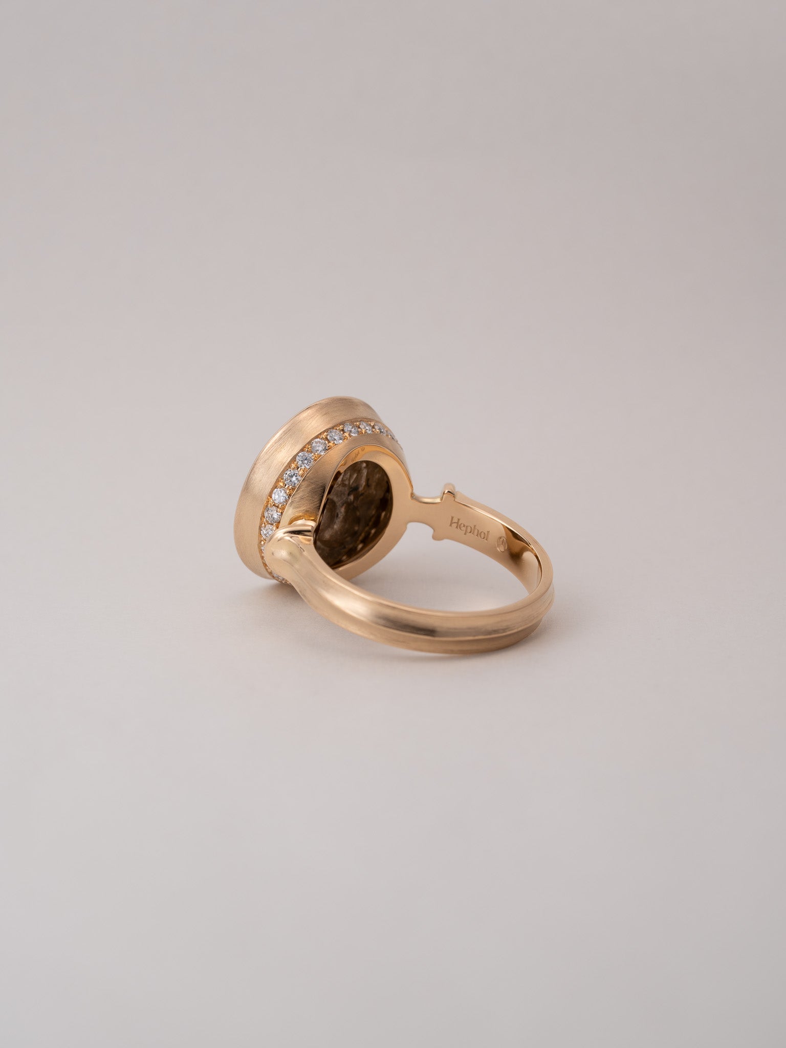 K18イエローゴールドの台座に静かに据えたリングです