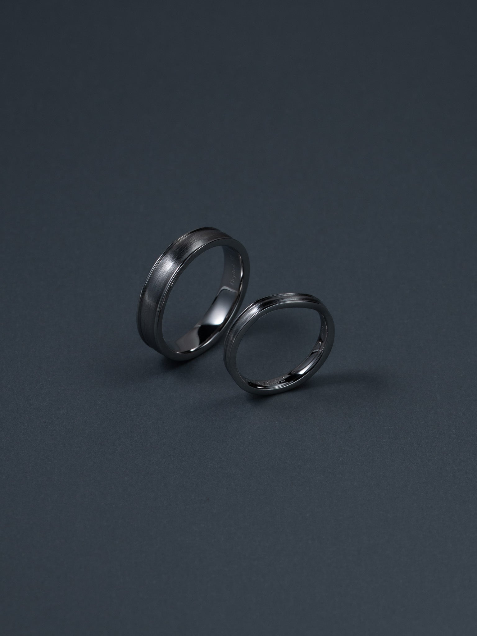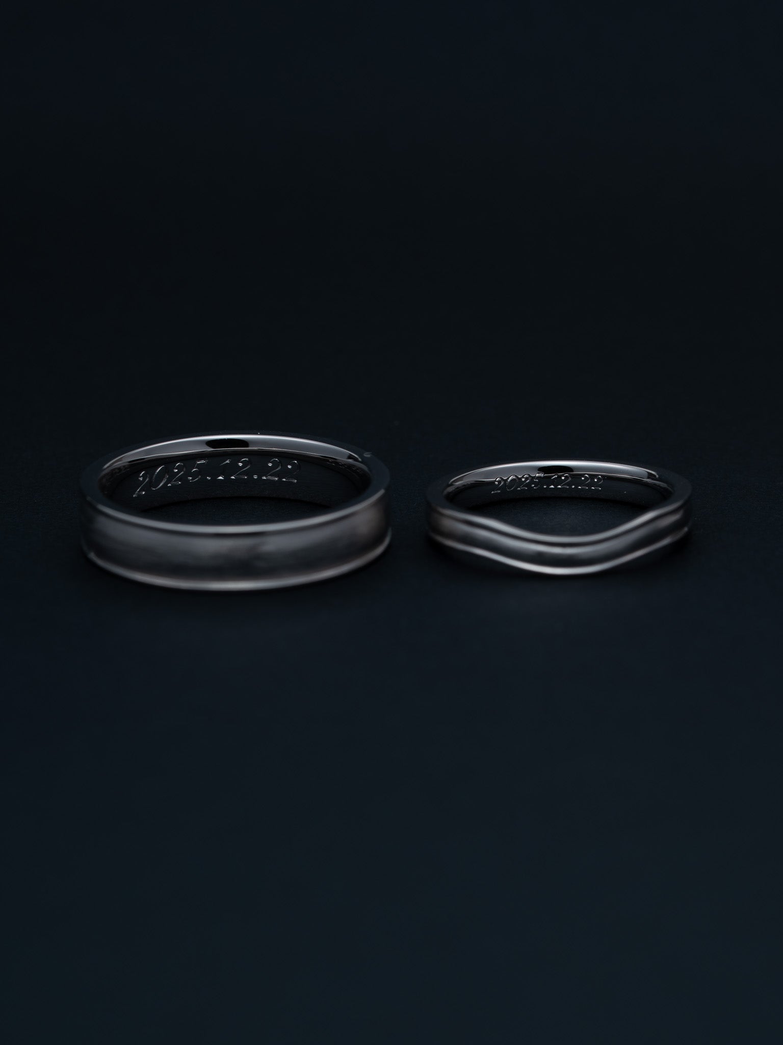 人生の節目にお選びいただいたLine Ling基本のデザインは同じまま 幅と厚みの違いによってそれぞれの手に自然に馴染むよう仕立てたプラチナのリングですリングの内側には手彫りでお二人の大切な日を刻んでいます過度な装飾を施さず日常の中で無理なく使い続けられる穏やかな存在感を大切にしたリングですMaterial:Pt950